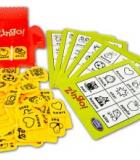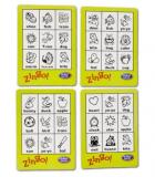 1) Игроки выбирают карточку. Карточки двусторонние: желтая сторона карточек - более легкий вариант игры, т.к. изображения на разных карточках повторяются реже и соревнование будет менее напряженным; красная сторона - сложнее, т.к. больше совпадающих изображений на карточка, т.е. соревнование будет более напряженным